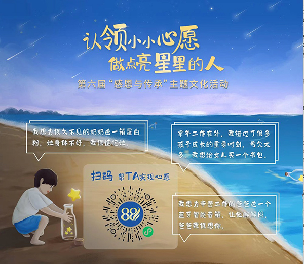 8月8日當(dāng)天,“心愿漂流瓶”通過(guò)小程序正式公布,很快獲得了大家的積極響應(yīng):集團(tuán)多位高管帶頭支持,機(jī)關(guān)員工、項(xiàng)目經(jīng)理以及下屬單位也紛紛行動(dòng),通過(guò)個(gè)人或集體的名義獻(xiàn)上愛(ài)心。