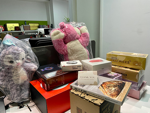 送給奶奶的保健品,送給父母、妻子的按摩儀、送給父親的剃須刀、還有給孩子們的文具、書(shū)籍、籃球……愛(ài)心物品陸陸續(xù)續(xù)從同事們手中送來(lái),又很快踏上了前往工人們家中的道路。