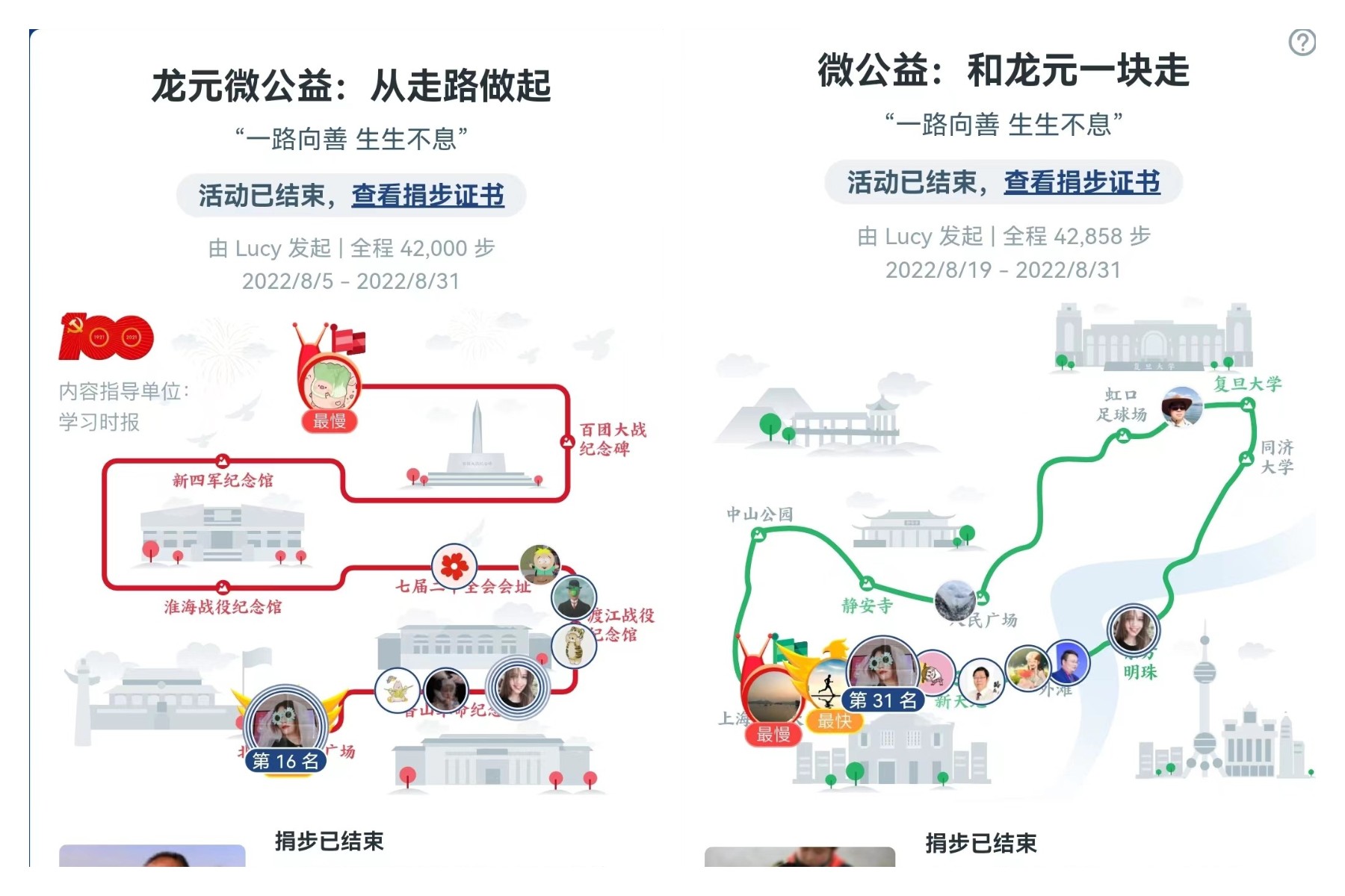活動(dòng)發(fā)起后,龍?jiān)嗄隉崆楦邼q,除總部外,遠(yuǎn)在全國(guó)各地的龍?jiān)策h(yuǎn)程助力,不到一周就完成了30公里的行走任務(wù)。